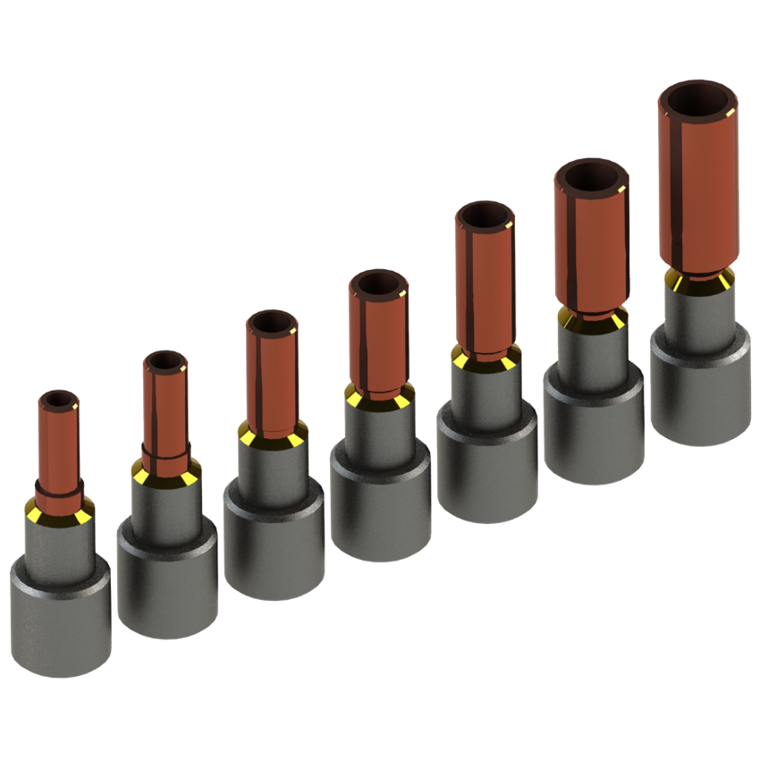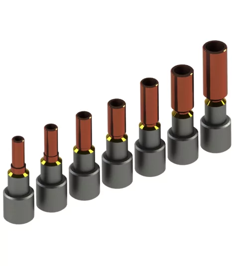 Besteht aus einer Basis aus Stahl E24 - C35R und einer Hülse aus Kupfer.