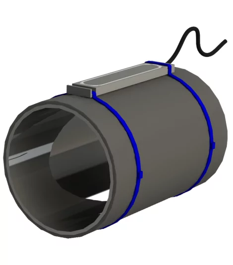 The permanent corrosion coupon is placed directly on the pipe. It is designed to be left permanently.