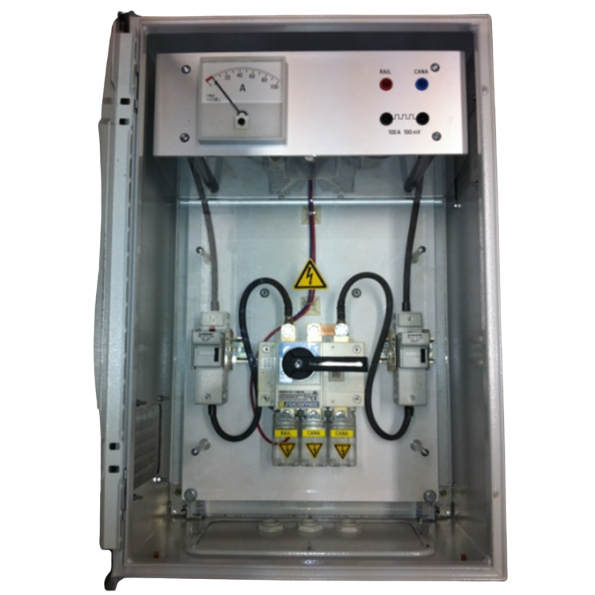Drainage en coffret mural permettant de faire transiter les courants vagabonds de la canalisation vers le rail.