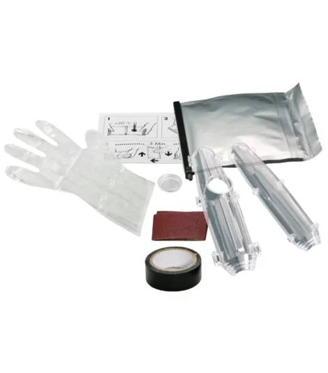 La trousse de jonction est livrée avec la résine à couler pré dosée, PUR type EG, résistante à l'hydrolyse.